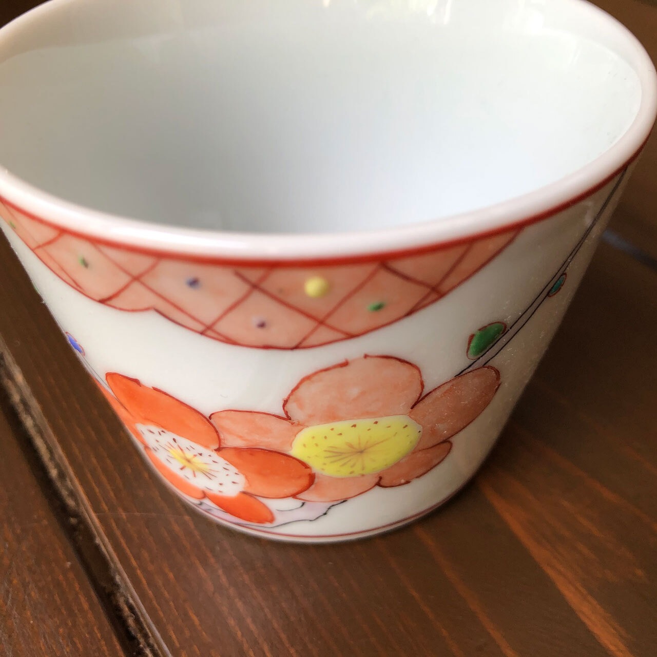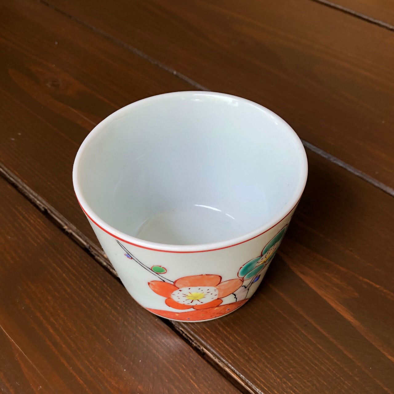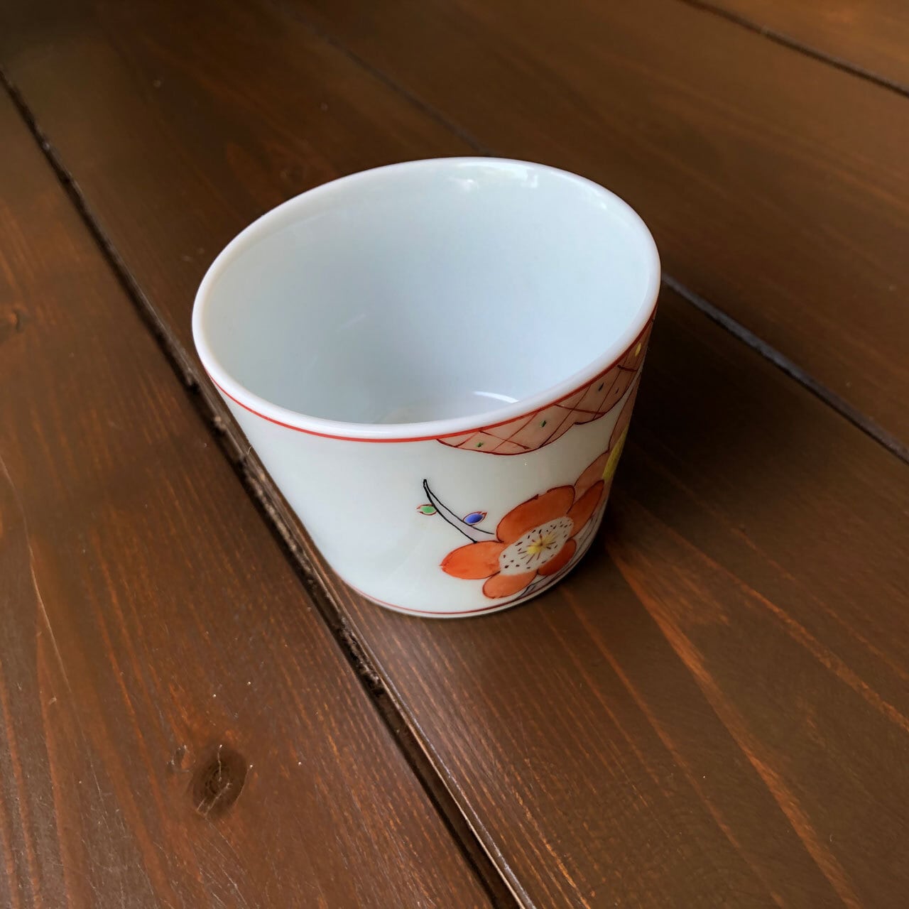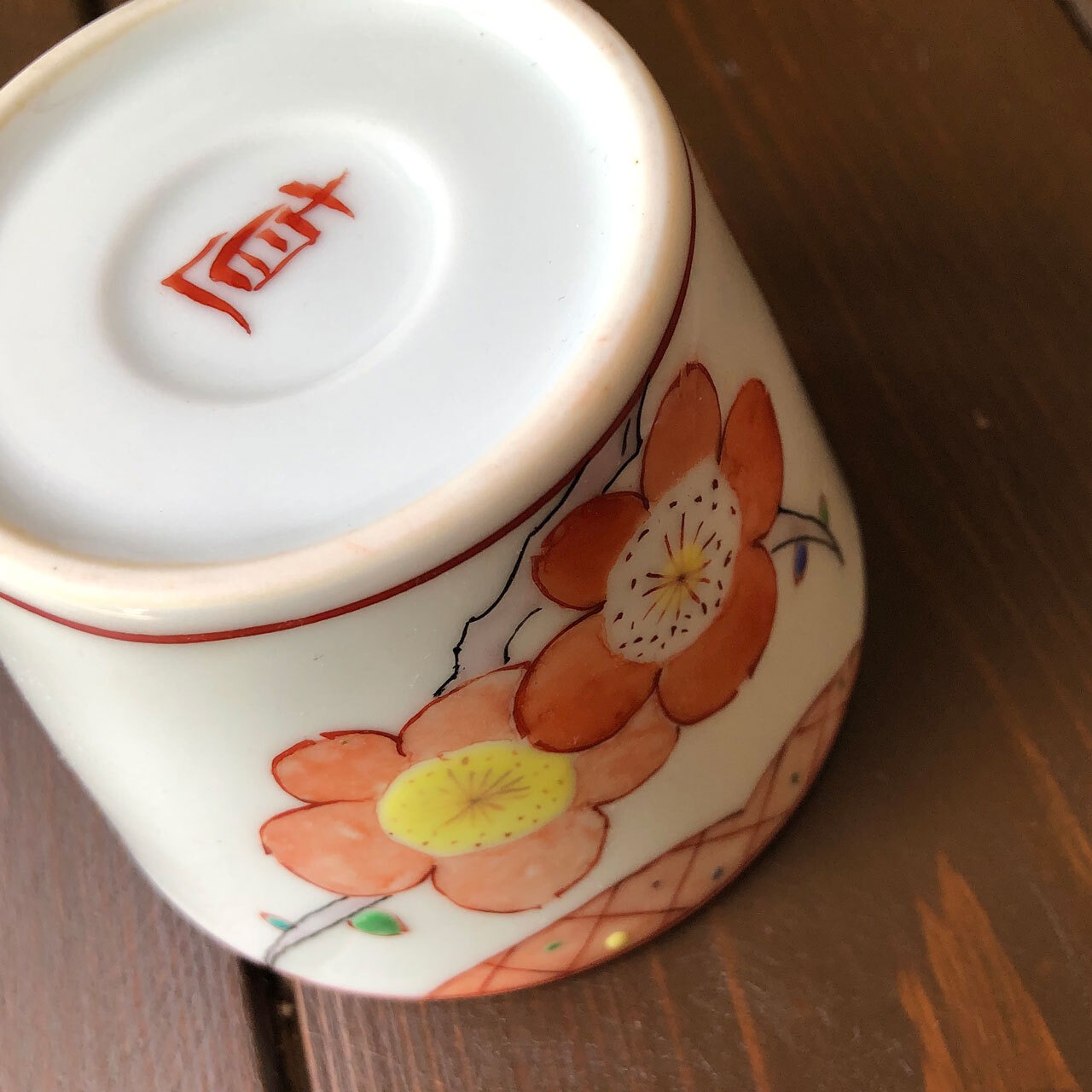 ■枝や茎は黒の線で花や土(雲?)は赤い線と分けて描き、少し遠近感を演出しています。花びらは呉須を含ませた上から筆先に水を含ませ、一枚一枚、花の中心から外側に伸ばして描きます。上絵の場合、水を含ませることは余りありません。梅の花の蕾は一つ一つカラフルにし、遊び心のある作品となっております。どれも、各々手作りにつき、申し訳ありませんが、在庫は一点のみとなります。