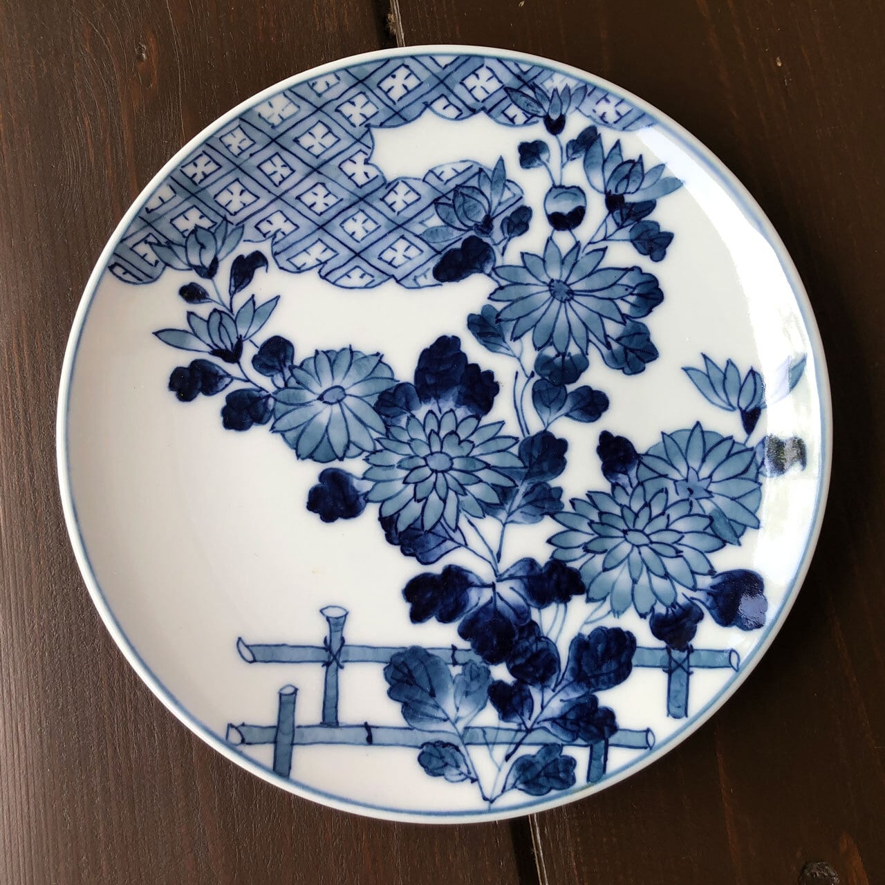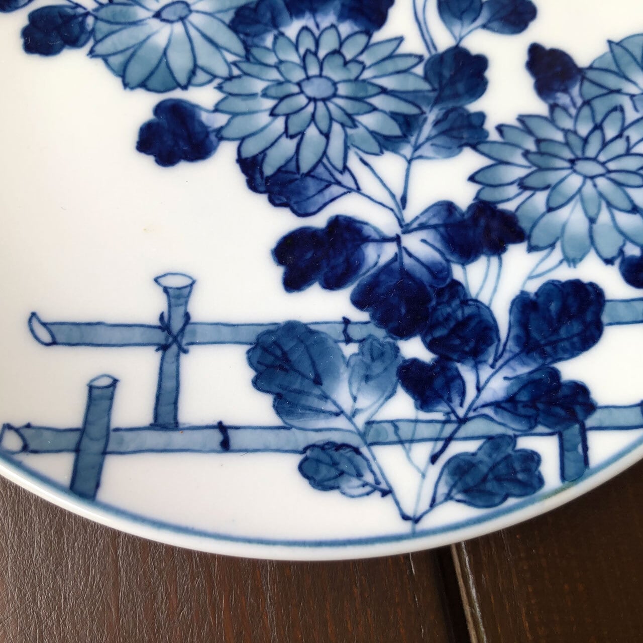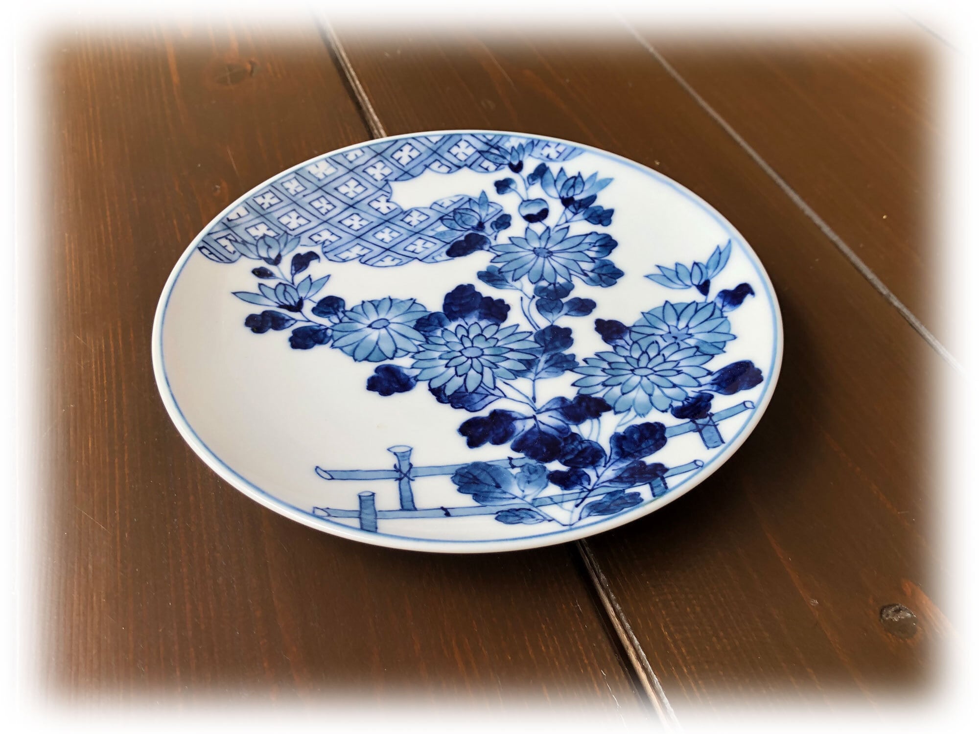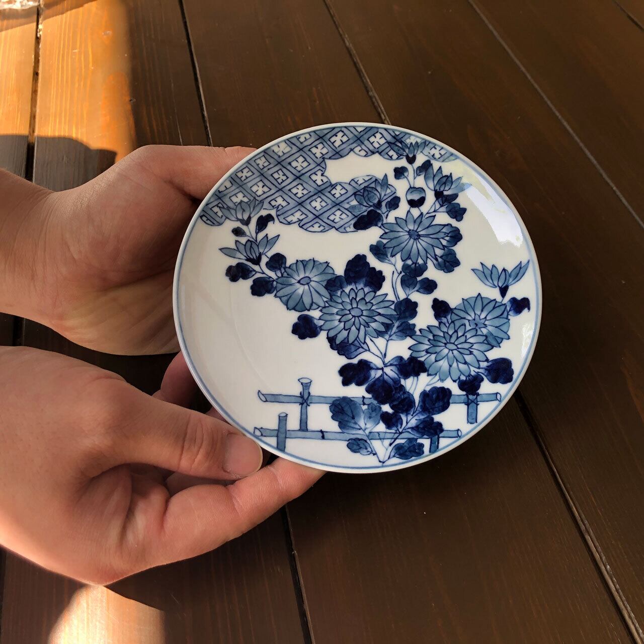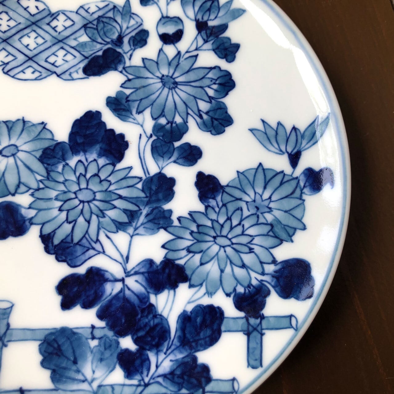 ■日本庭園のような和風な小皿となっております。雲の上に太陽が隠れているかのように、雲へと目掛けて花が伸びています。