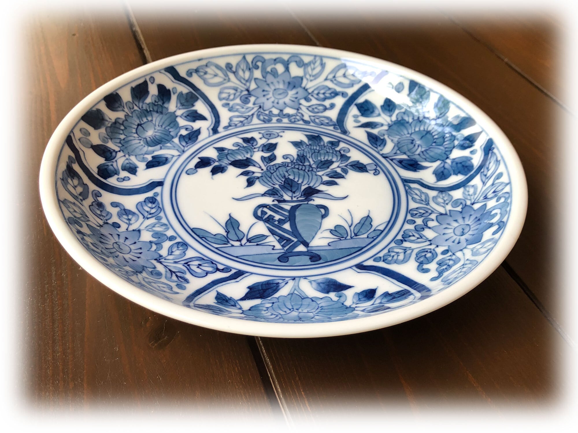 ■異なる花柄を交互に下絵付をしています。中は牡丹を生けた花瓶になっています。とても密に描いておりますので、飾るもいいですし、料理に使用しても、とても映えると思います。どれも各々手作りにつき、申し訳ありませんが、在庫は一点のみとなります。